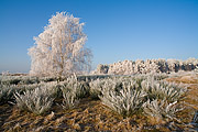 Von Rauhreif überzogene Winterlandschaft, Försterhofer Heide, Mecklenburg-Vorpommern, Deutschland, Europa